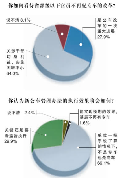 公車改革有很多具體問題,工資高的可以不配車,自己買車,但欠發(fā)達地區(qū)工資低的怎么辦?一些地方的處級干部一個月就兩三千元的工資,自己根本養(yǎng)不起車;針對公車改革文件要求部級以下不固定用車,下面也有辦法變相固定。